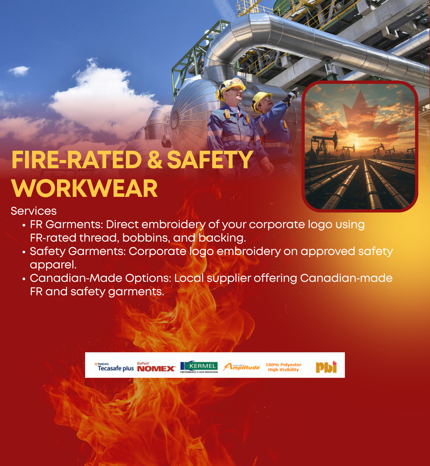 Yes — we offer a curated selection of FR apparel, safety wear, and high-visibility garments. You can shop them directly through our FR & Safety Wear section, including options available through our local Canadian-made supplier right here in Alberta.